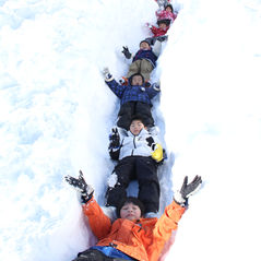 靴の履き方・転び方から丁寧に指導します!一人で滑って止まれるお友達はリフトに乗ってよりスキーの楽しさを体感していただきます。